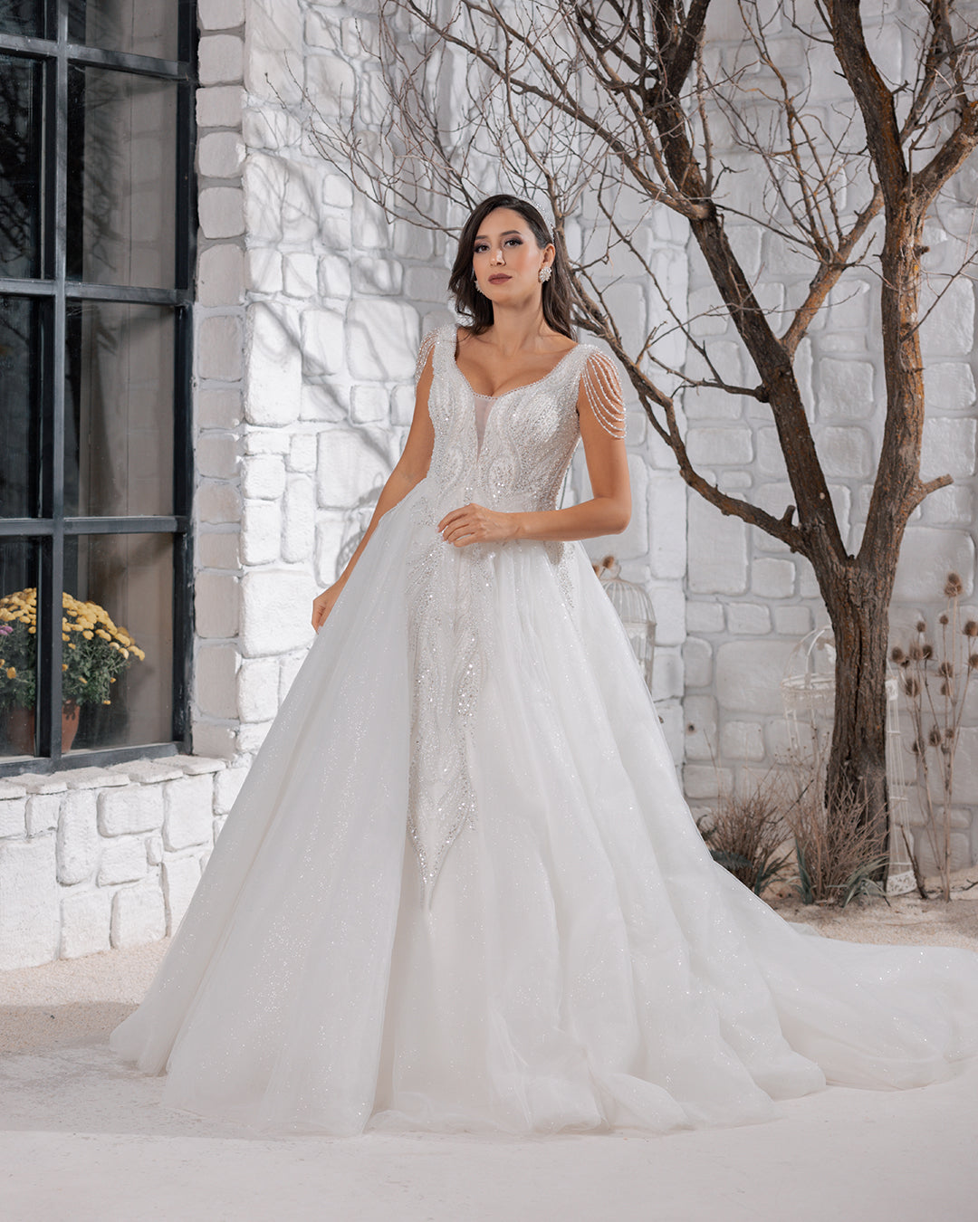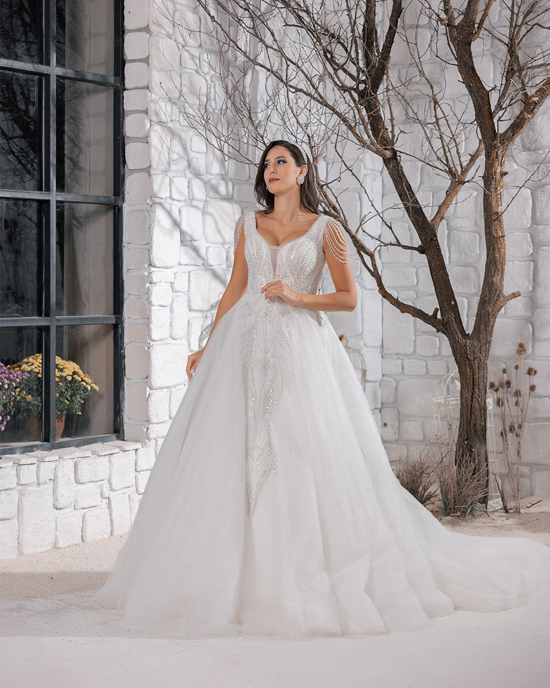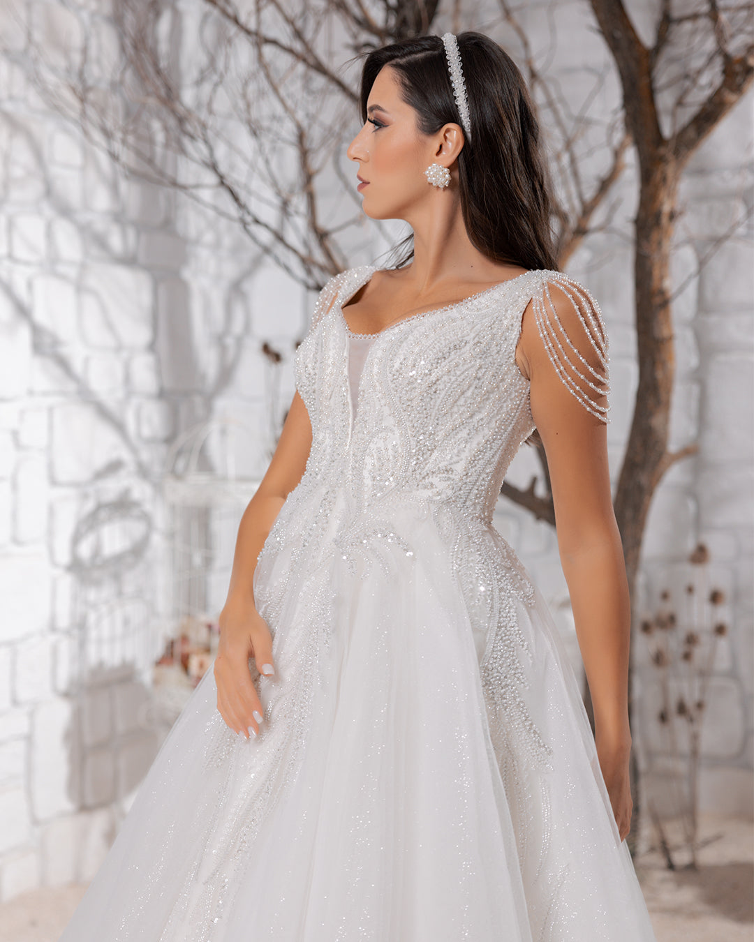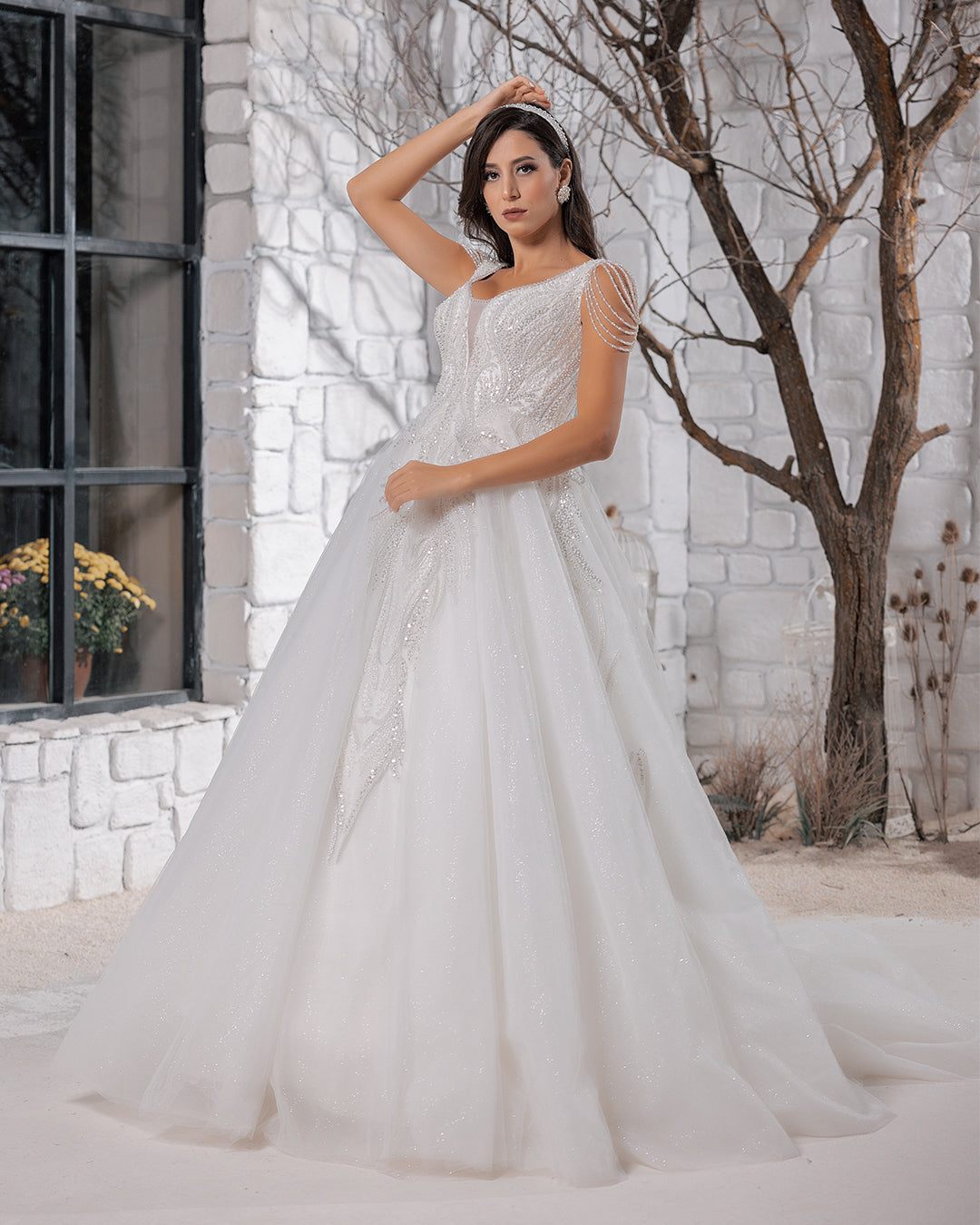 A majestic golden gown with rich Arabic-inspired detailing and a luxurious silhouette. Designed to embody royalty, power, and timeless beauty.
